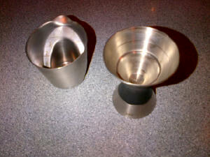 My favorite measuring devices March 9, 2013NotestoolsAdam The jigger is 1 oz and 1.5 oz. The little measuring cup is 2 oz. That’s all you need!